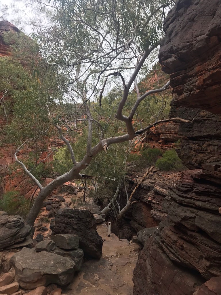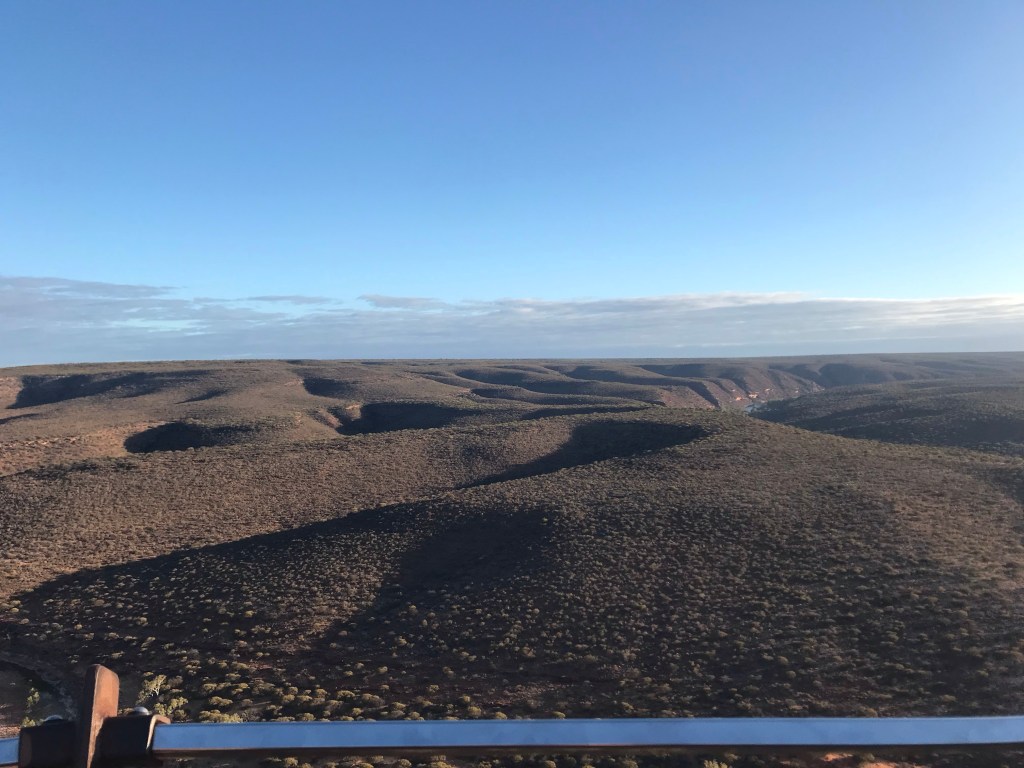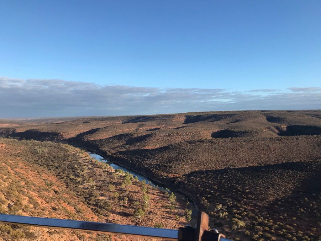 Im Visitor Centre haben wir gestern den Tipp bekommen, sehr früh wenn’s hell wird in den Park zu fahren, da es gegen Mittag bis zu 50 Grad heiß werden kann. Also haben wir den Wecker auf 4:30 Uhr gestellt und waren schon um 6:00 Uhr auf dem Parkplatz zum Skywalk, eine unglaubliche Stahlkonstruktion, von wo aus man fantastische Ausblicke hat.