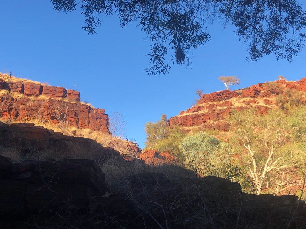 Nach einer Nacht im Dales Camp Ground – außer uns war nur noch 1 anderes Auto da – stockfinster und mit riesigen Käfern auf der Buschtoilette – aber dafür abermals unter einem üppigen Sternenzelt – waren wir wieder früh genug wach um unsere letzte Schlucht, die Dales Gorge zu erkunden.