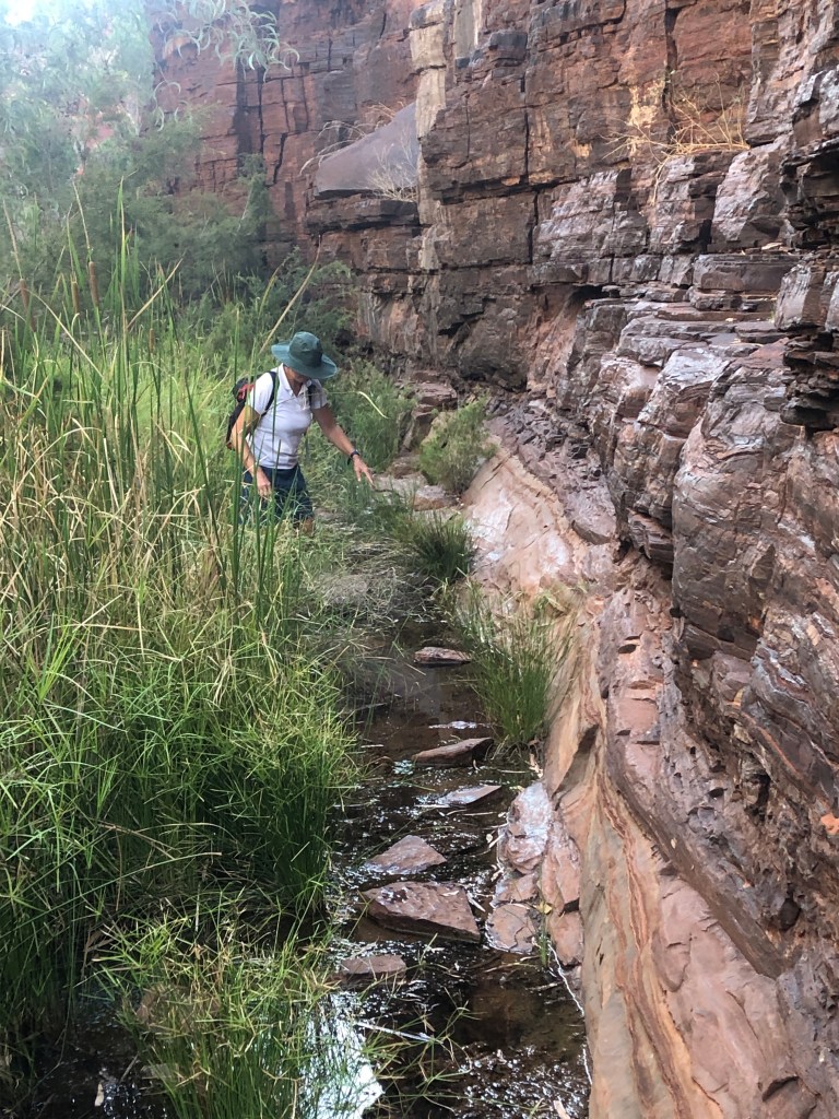 Diesmal ging es oben am Rand der Schlucht hin, dann über Felsenstufen hinab und unten in der Schlucht zurück.