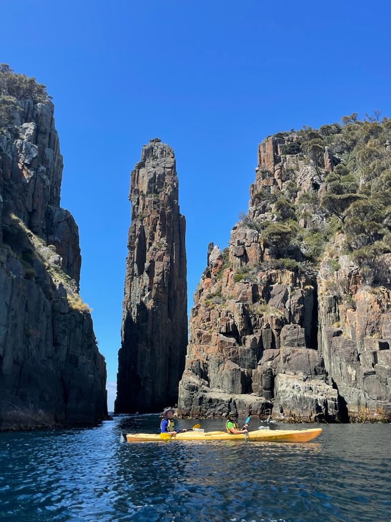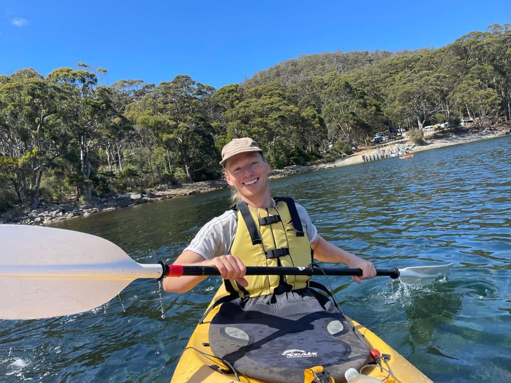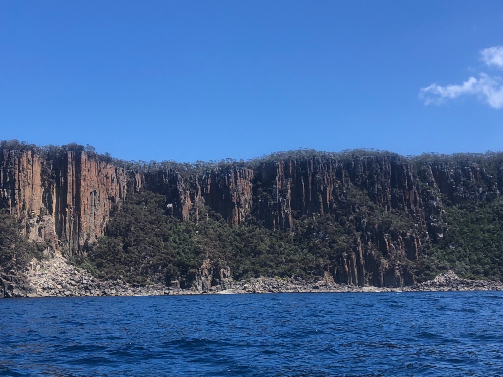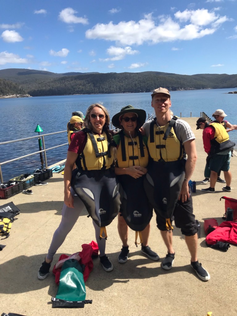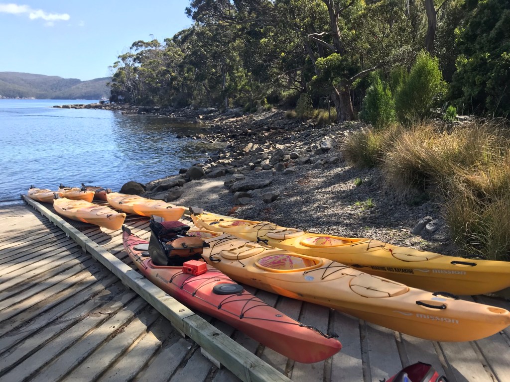 Heute stand die geführte Kajakfahrt in der Fortescue Bay an, 1,5 Autostunden von Hobart entfernt. Bei allerfeinstem Kajakwetter sind wir 5,5 Stunden (mit einer kurzen Lunchpause) durch die Bucht gepaddelt. Aber seht selbst…