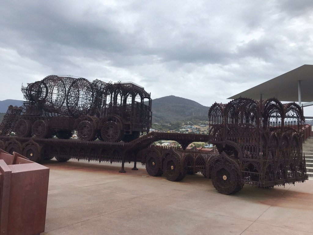 Nach so viel Na-tur, durfte es heute auch mal etwas Kul-tur sein. Wir hatten Tickets für das Museum of Old and New Art, kurz MONA gebucht.
