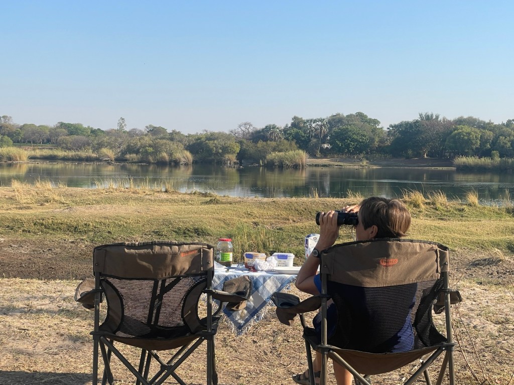 Zunächst haben wir mal wieder ein hübsches Frühstücksplätzchen gefunden. Gesehen haben wir außer ein paar Vögeln nicht viel…in der Ferne ein paar Hippoköpfe im Wasser und wir haben sie rufen hören.Später liefen uns ein paar Zebras über den Weg – mit einem JungtierVon vorne sehen sie am schönsten ausZum Nachmittagskaffee hatten wir Besuch von ein paar Meerkatzen. Ich würde Euch so gerne ein lustiges Video hochladen, aber das Netz gibt nicht genug her. Dann habe ich endlich meine ersten Büffel gesehen Und dann sahen wir eine große Elefantenherde Richtung Wasserloch laufen, fuhren dorthin……und sahen ihnen beim Planschen zu