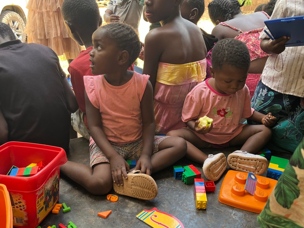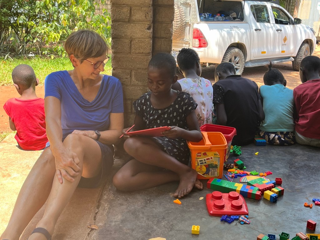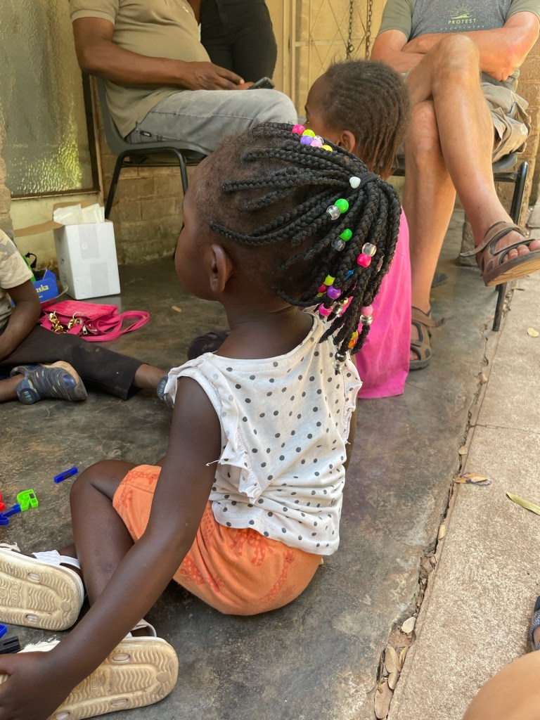 Die Organisation zahlt einigen von denen das Schulgeld oder auch mal andere Dinge, aber in dieses Haus darf jeder kommenEin paar Duplosteine und ein paar Tafeln, auf denen man schreiben oder malen kann, für die Jungs ein Fußball und für die Älteren gibt es die Möglichkeit an Computern zu arbeitenWir haben unsere Namen auf die Tafeln geschrieben Die Kleine wurde von ihrer „großen“ Schwester auf dem Rücken hergetragen